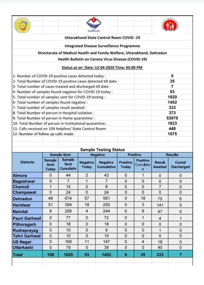 कोरोना को लेकर उत्तराखंड के लिए खुशखबरी-देखिए आज का हेल्थ बुलेटिन