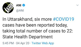आपको बता दें रूडकी कि के सिविल अस्पताल में भर्ती जमाती में कोरोना पॉजिटिव की पुष्टि हुई है। इसी के साथ उत्तराखण्ड में अलग-अलग जगहों के कोरोना पॉजिटिव मरीजों की संख्या बढकर 22 हो गई है। शु्क्रवार को भी छह मरीजों में कोरोना की पुष्टि हुई थी। पिछले तीन दिनों में जो कोरोना पॉजिटिव मिले हैं उनमें से अधिकतर तब्लीगी जमात से जुडे रहे हैं।