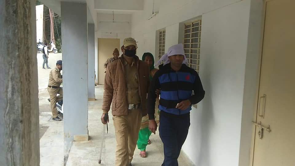| वंदना के पति को पूछताछ के लिए ले जाती पुलिस |
