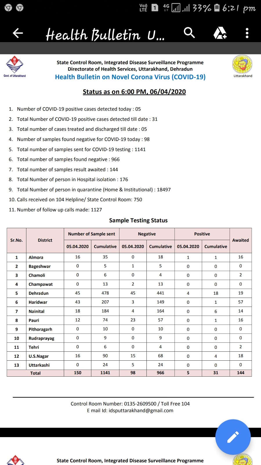स्वास्थ्य विभाग ने जारी किया हेल्थ बुलेटिन उत्तराखंड में यहां यहां मिले कोरोना पॉजिटिव मरीजों की संख्या पहुंची 31