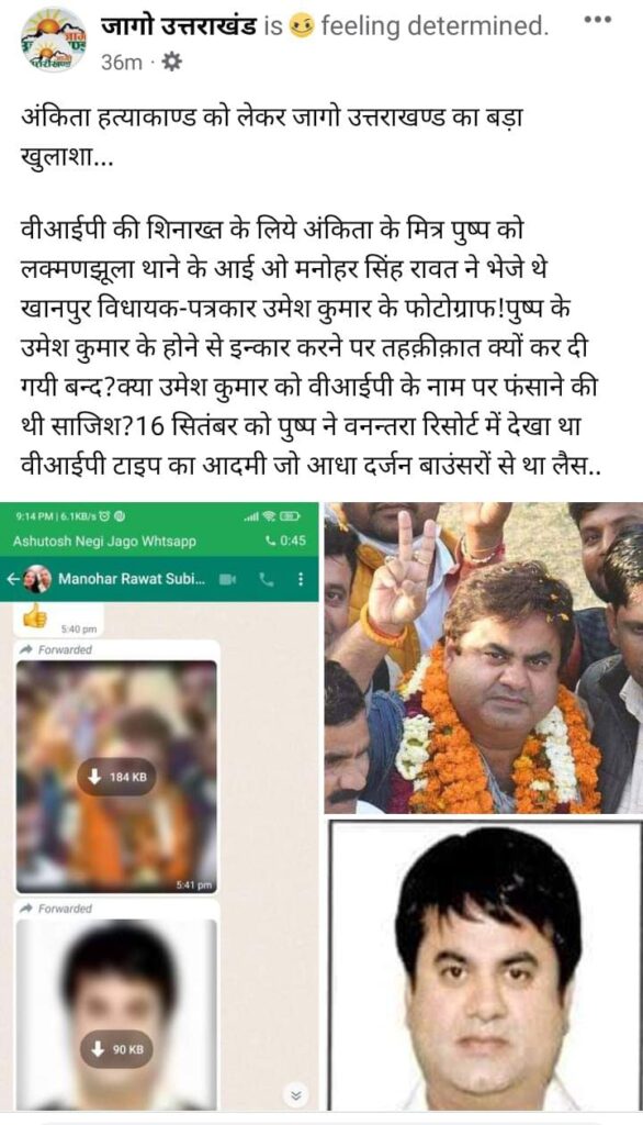 उससे साफ पता चलता है कि सरकार उमेश कुमार को बचाने में जुटी है। कांग्रेस की वरिष्ठ प्रवक्ता सुजाता पॉल ने कहा कि ये साफ हो गया है कि उमेश कुमार का नाम उस जांच के दायरे में आ रहा है कि वह कहीं VIP ना हो मनोहर सिंह रावत जो जांच अधिकारी ने पुष्प अंकिता भंड़ारी के दोस्त के भंड़ारी को ये तस्वीर भेजी थी, जो उमेश कुमार की थी सुजाता पॉल ने कहा सरकार उमेश कुमार को बचाने के लिए पूरी कवायद चल रही है। वहीं उनहोंने कहा कि जो राजद्रोह के मुकदमें किए गए थे यह सच्च थे कि झूठ थे। ये कैसा पता चलेगा अब ये दूसरा मेटर सामने आ रहा है वह बता रहा है कि भाजपा के अंदर कितनी गुटबाजी है। उनहोंने कहा की त्रिवेंद्र सरकार ने जो SLP दाखिल की थी उसको धामी सरकार कर रही है। सुजाता पॉल ने कहा की सरकार उमेश के साथ दोस्ती का धर्म निभा रही है। वहीं अब अंकिता हत्याकांड़ का मामला नैनीताल हाईकोर्ट में चल रहा है। वहीं बीआईपी का नाम का खुलासा ना होने पर प्रदेश की जनता में आक्रोश है। साथ ही अब S LP वापिस लेने के बाद उत्तराखण्ड की कड़ाके की ठंड़ में उत्तराखण्ड की सियासत गरमाई हुई हैं।